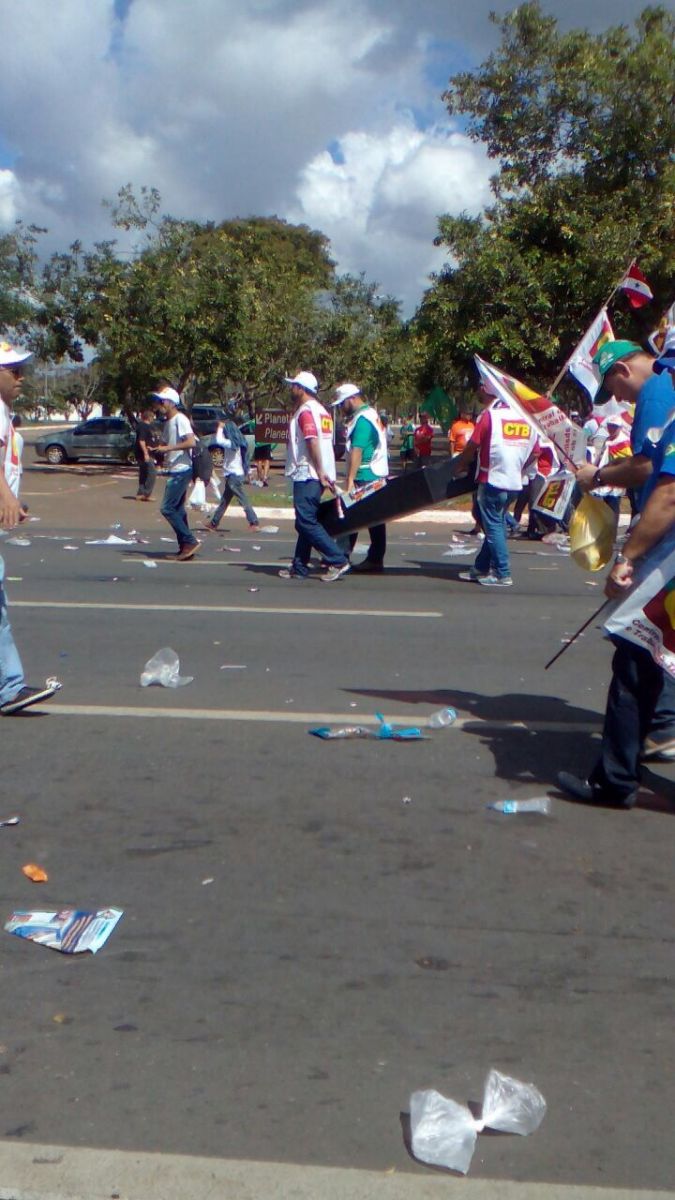 Durante a caminhada já se percebeu que alguns grupos de manifestantes estavam mascarados, políticos e representantes das entidades pediram para que estas pessoas retirassem as máscaras. Mas não obtiveram êxito. Estes grupos então tentaram ultrapassar a barreira do palácio e com atos de vandalismo fizeram com que repercutisse uma imagem de manifesto não pacífico. A PM emtão agiu sem piedade, para dispersar a multidão, lançando bombas de gás lacrimogênio sobre os manifestantes e atirando com balas de borracha. O presidente ilegítimo baixou um decreto autorizando as Forças Armadas a reprimir manifestações. A ação destes grupos mascarados não representa as organizações sindicais e sociais que foram até Brasília para lutar de forma pacífica pelos seus direitos, não são atos que podemos defender. Mas, a forma como a polícia agiu, esquecendo que ali no meio da multidão, crianças e idosos estavam presentes em vários espaços da concentração, de maneira nenhuma deve ser defendida também. O povo não irá se intimidar, não deixará de lutar jamais!