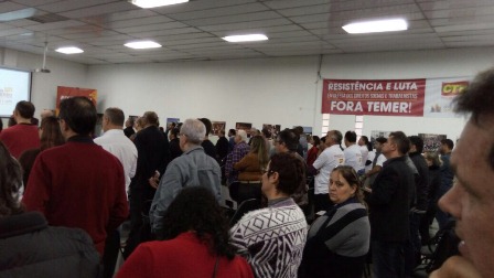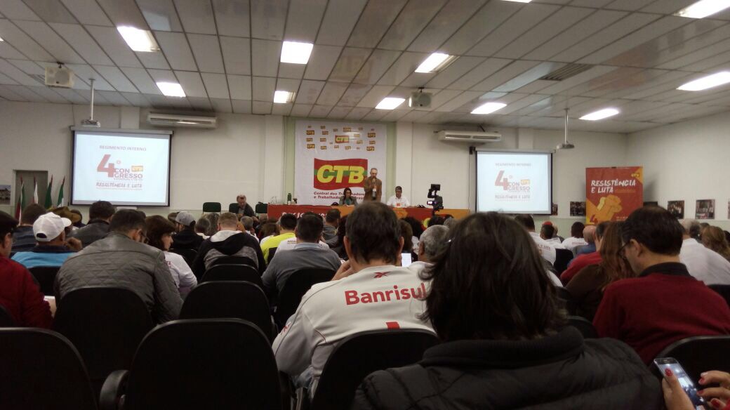 Hoje pela manhã (1º de junho) teve início o 4º Congresso Estadual da CTB no auditório da Fetag, em Porto Alegre, o objetivo do congresso é de debater estratégias de resistência e falar da luta pela democracia e pelos direitos sociais. Na abertura, a pauta foi sobre as reformas da previdência e trabalhista, retirar o atual presidente do comando e pedir por eleições diretas já.