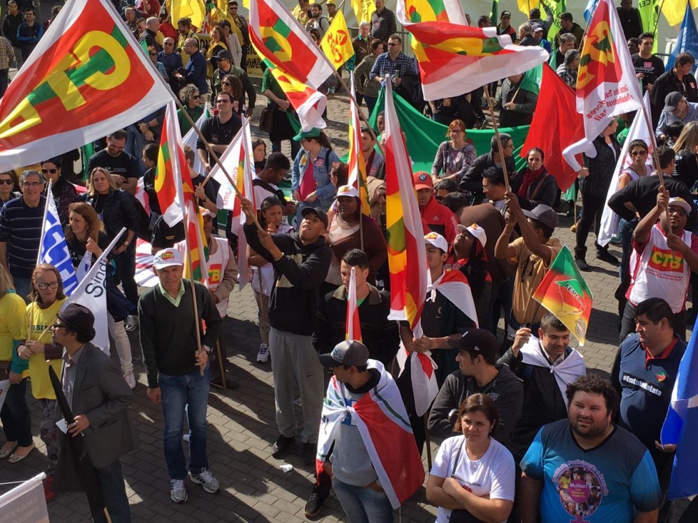 Grande mobilização em Bagé contra as reformas trabalhistas e da previdência social. Uniu sindicatos de trabalhadores urbanos e rurais, centrais sindicais, representantes do movimento social, políticos, representantes de federações, de universidades. A mobilização foi encerrada na frente prefeitura onde cobraram uma posição do prefeito referente às reformas. A CTB foi representada pelo diretor Milton Brasil.