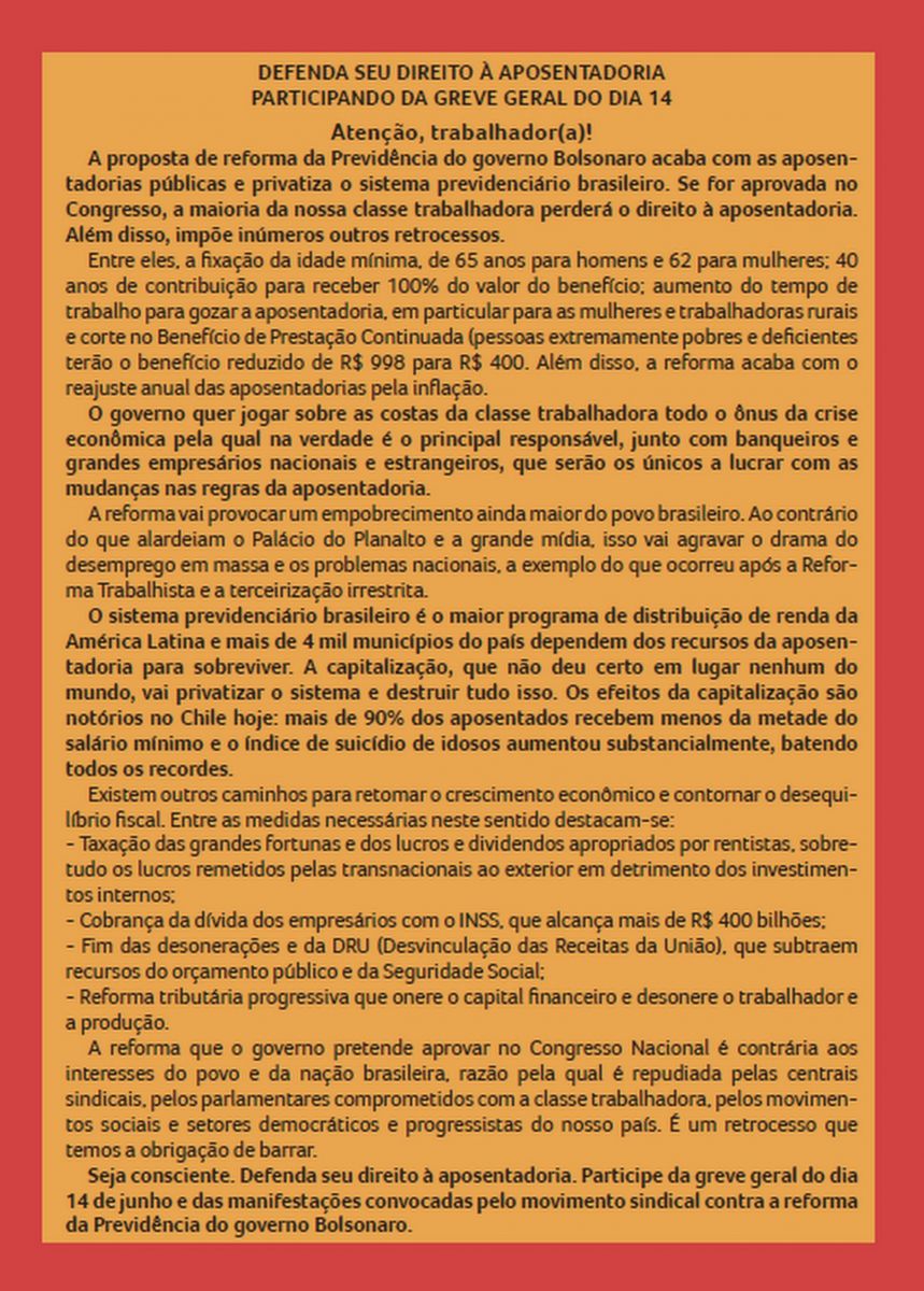 Abaixo segue panfleto organizado pela CTB-RS: