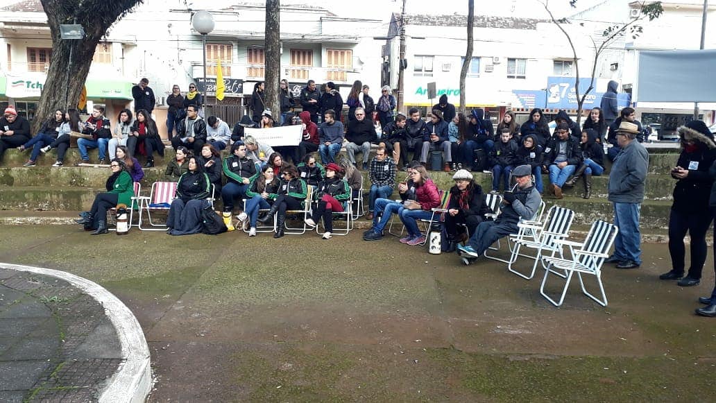 Em Santo Ângelo, ocorreu na data de ontem, uma Aula Pública de Cidadania. Pela parte da manhã, a concentração ocorrerá na Praça do Brique, às 08h30min. Pela parte da noite, às 19h30min, ocorrerá Aula Pública no IFFar Campus Santo Ângelo-RS.