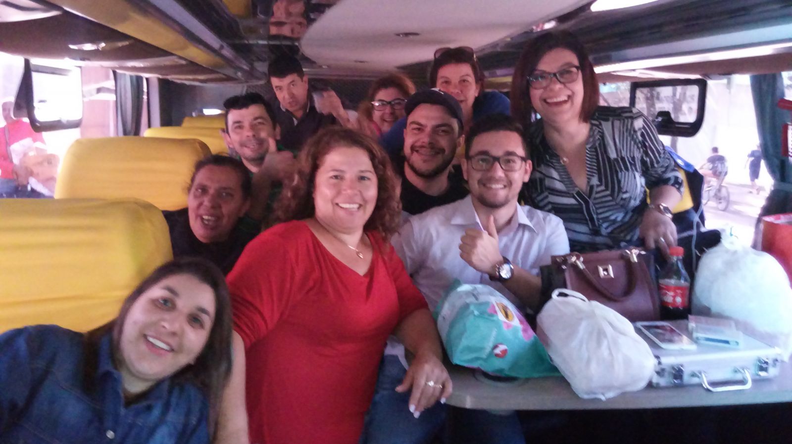 Acima, juntamente com os representantes sindicais está indo a Brasília a vereadora da cidade de São Luiz Gonzaga, Ana Brum de Barros. Mulher Guerreira e que está sempre na luta em defesa dos trabalhadores. Abaixo os representantes sindicais já a caminho de Brasília.