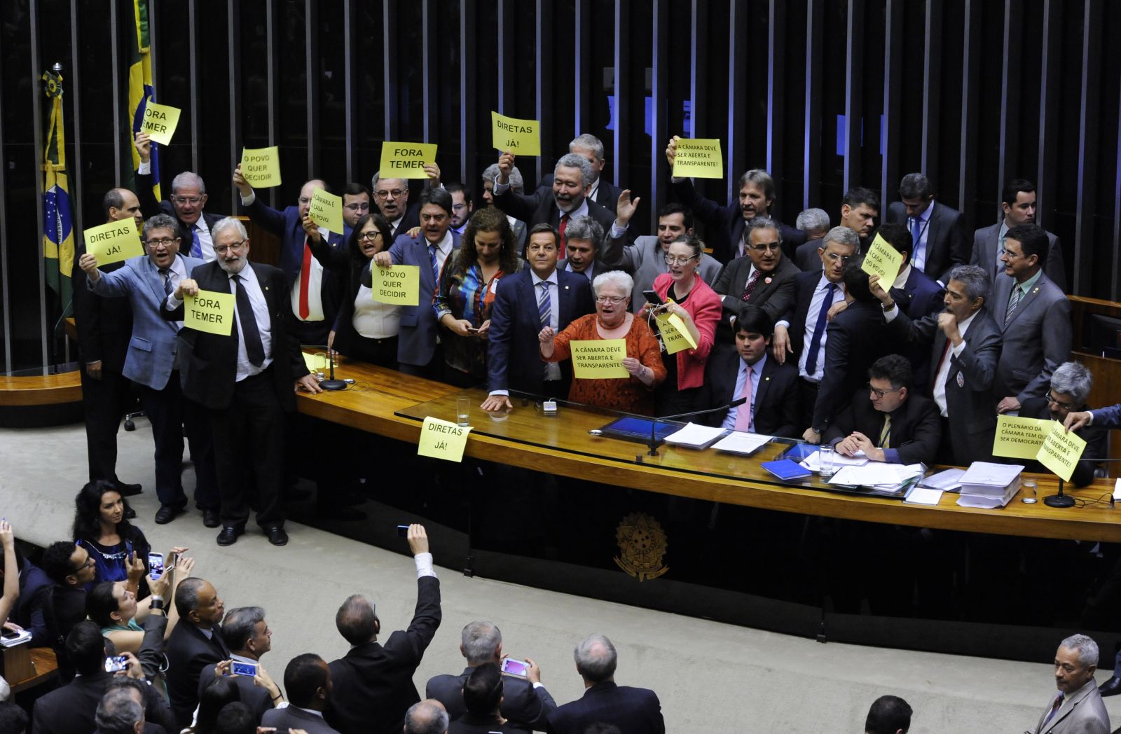 Ontem 24 de maio à noite, com a ausência de deputados da oposição, o plenário da Câmara dos Deputados aprovou seis medidas provisórias (MPs) que trancavam a pauta de votações da Casa. Este fato aconteceu devido à oposição ter decidido se retirar do plenário em protesto contra o decreto do presidente Michel Temer, que autorizou a presença das Forças Armadas nas ruas do Distrito Federal. A decisão de abandonar o plenário foi tomada por deputados do PT, PSOL, Rede, PDT, PCdoB e PMB.